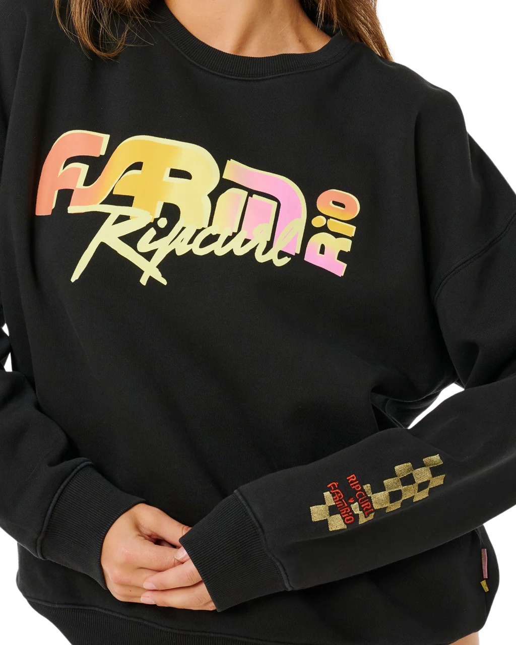 Blending Rip Curl’s surf heritage with FARM Rio’s signature prints, the Womens Carioca Oversize Sweatshirt in Black brings bold, print-led style to an everyday essential, celebrating beach culture on a global scale.