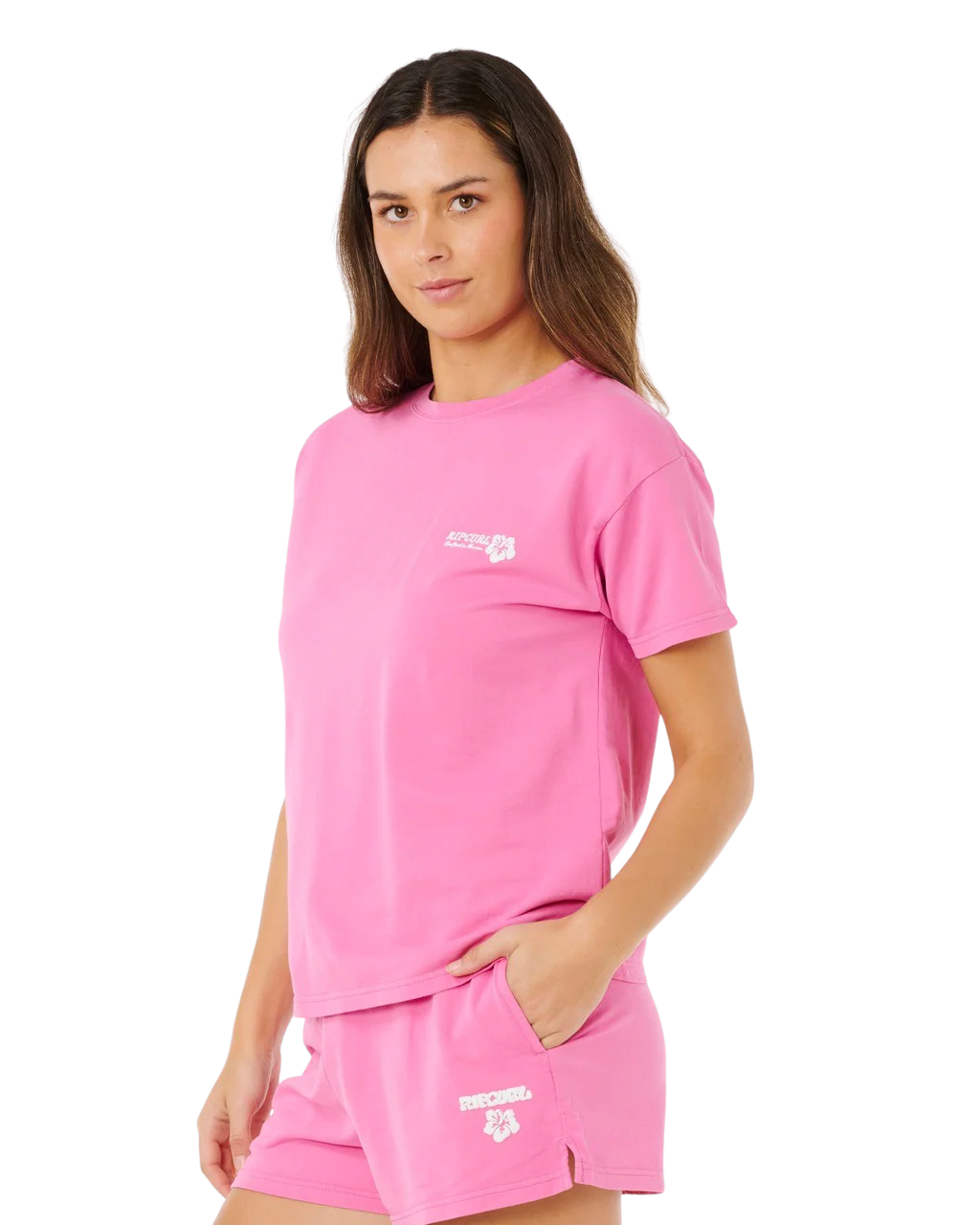 The Rip Curl Womens Surf Puff Party Pack Relaxed T-Shirt in Super Pink is all about easy comfort and laidback surf vibes.
